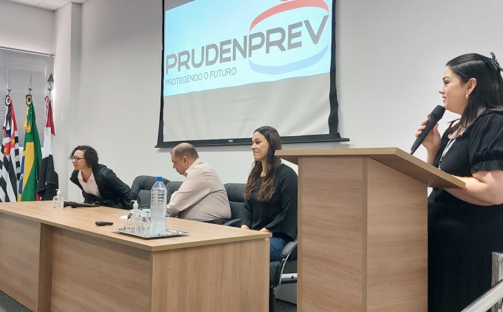 O evento iniciou com a composição da mesa de autoridades, com a presença do Sr. João Donizete Veloso dos Santos, Superintendente da Prudenprev; da Sra. Karina Sacardo de Souza, representando a diretoria do SINTRAPP (Sindicato dos Trabalhadores do Serviço Público Municipal de Presidente Prudente); e da Sra. Flaviane Olivette, Secretária de Administração da Prefeitura de Presidente Prudente.